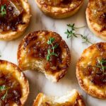 Right after they come out of the oven, sprinkle fresh thyme leaves over the top for that lovely herbal aroma. These French Onion Soup Bites Recipe are best enjoyed warm, just as the cheese is melty and the dough still soft inside but crisp outside.