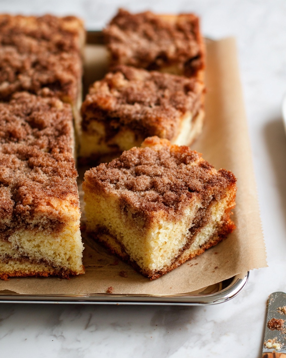 I like to keep it simple with this cake—a dusting of powdered sugar or a light drizzle of vanilla glaze really elevates it without hiding the beautiful cinnamon swirls. Sometimes, I’ll add a few toasted almond slivers on top of the crumble for an extra crunch and a little garnish flair.