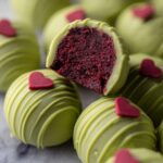 These festive Grinch Oreo Balls combine the rich, creamy taste of red velvet Oreos with smooth cream cheese, coated in vibrant green candy melts and topped with cute red heart sprinkles. Perfectly bite-sized and easy to make, these sweet treats are an adorable and delicious holiday dessert or party snack.