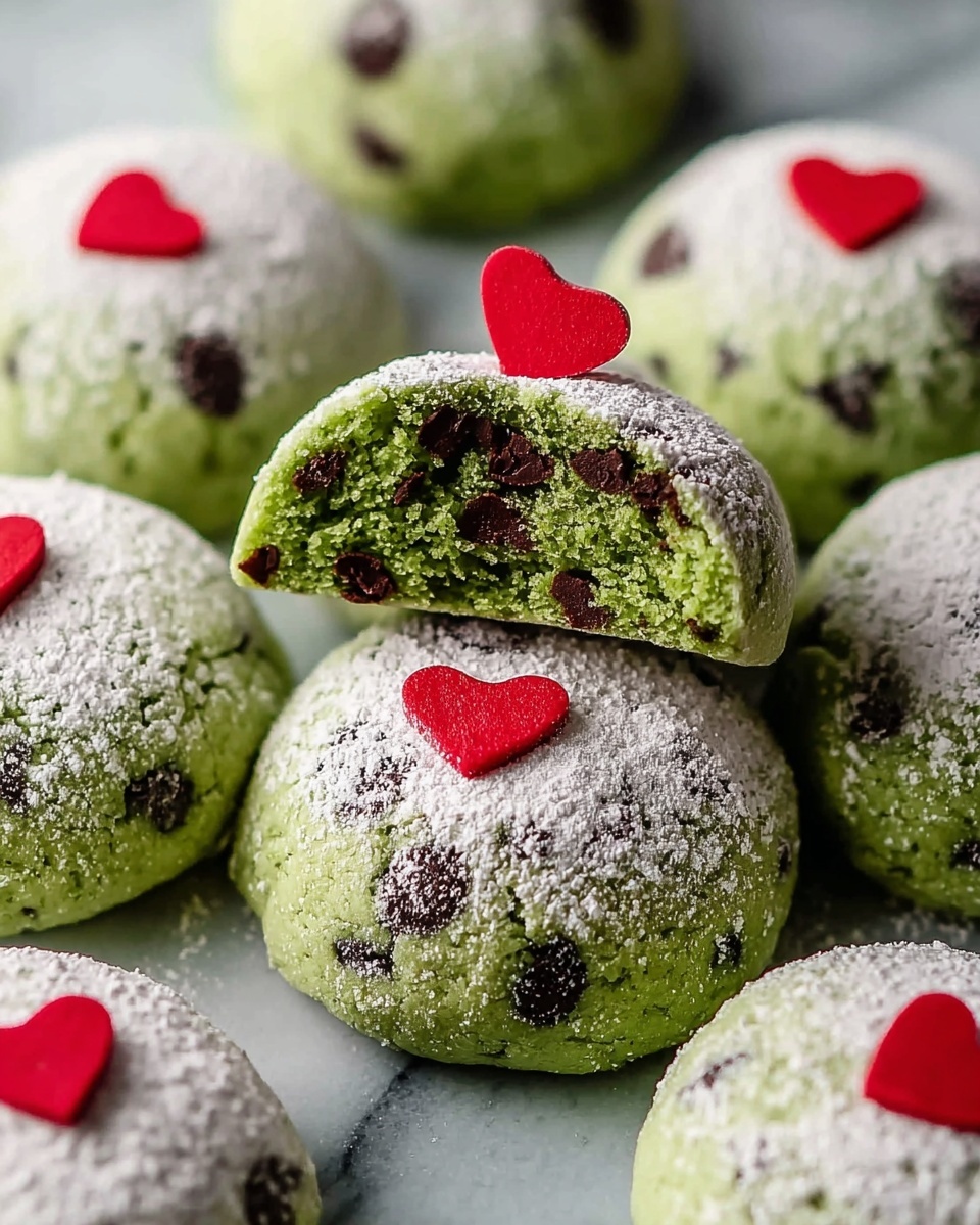 What makes this Grinch Snowball Cookies Recipe so special isn’t just the cheerful green color; it’s the surprise of mini chocolate chips tucked inside each bite and the fun red heart sprinkles on top that add a pop of holiday spirit. Plus, it’s a straightforward recipe that feels fancy but comes together without stress, so you can focus on enjoying the baking process. Trust me, you’re going to want to have the powdered sugar ready to dust generously!