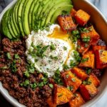 - Assemble the Bowl: In serving bowls, layer a generous portion of roasted sweet potatoes followed by the cooked ground beef.