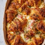 This Ham and Cheese Croissant Bake is a hearty and delicious breakfast or brunch dish featuring layers of flaky croissants, savory ham, and melted Gruyere cheese, all soaked in a rich, aromatic custard infused with fresh herbs and mustard. Baked to golden perfection, it’s perfect for feeding a crowd or enjoying as a comforting meal any day.