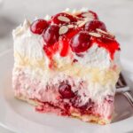 - Top Cherry Filling: Drop spoonfuls of the remaining ⅓ cherry pie filling over the Cool Whip layer, then gently swirl it in to infuse the flavors.