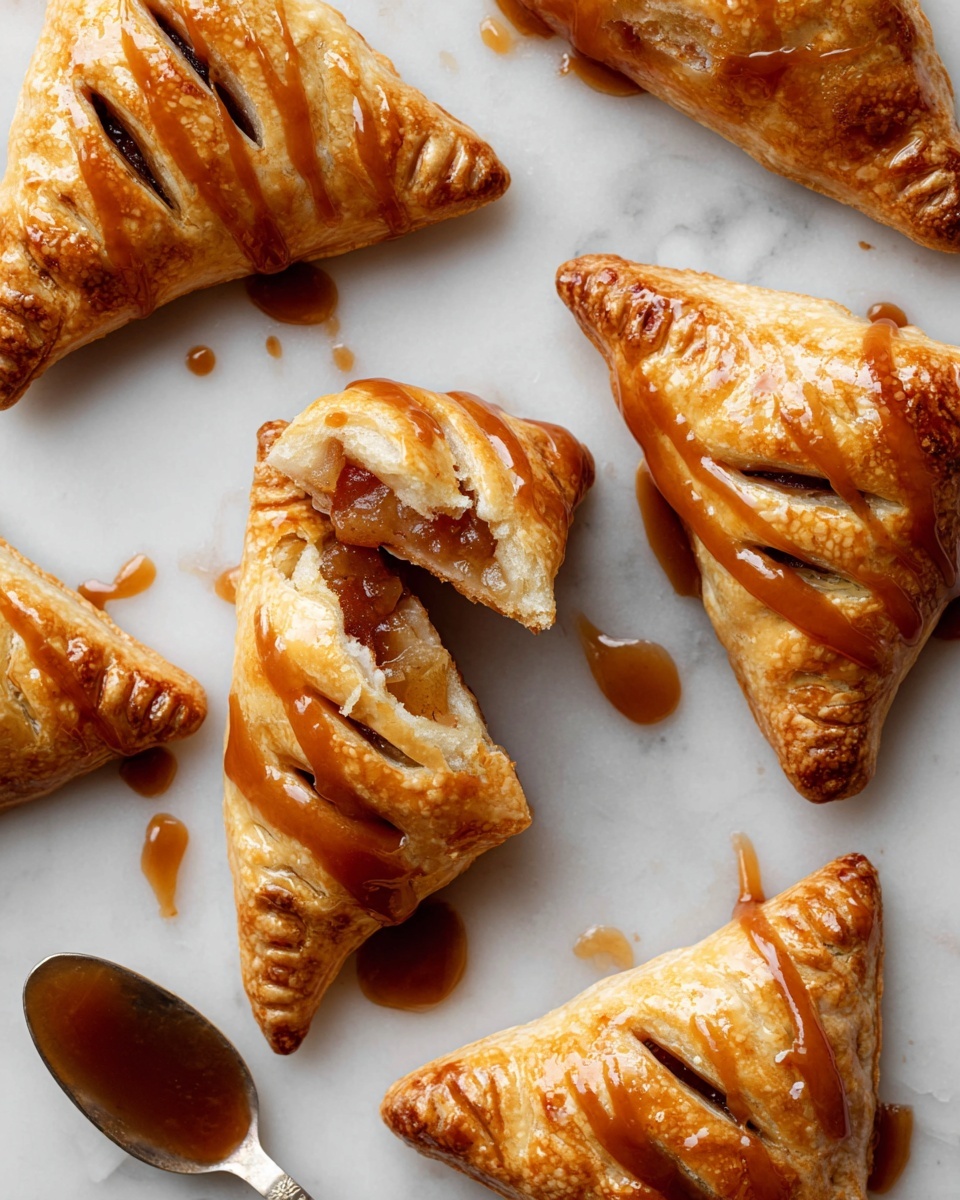 - Cool and Serve: Allow the turnovers to cool on a wire rack for 10 minutes before serving. Optionally, drizzle with salted caramel sauce for an extra indulgent touch.