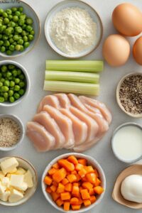 Start by boiling or poaching your chicken breasts until cooked through—usually about 15 minutes depending on thickness. Once cooled, dice the chicken into bite-sized pieces. While the chicken cooks, slice the celery and chop the onion finely. If you’re using frozen veggies, no need to thaw them yet; you’ll add those later.
