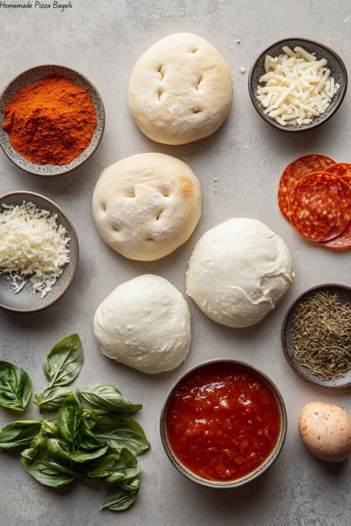 - Full-sized plain bagels, halved: These serve as the perfect base for your pizza toppings, but feel free to use any type of bagel you prefer.