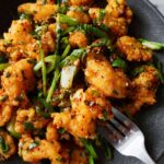 Now it’s time for the magic moment. Add your crispy cuttlefish to the pan with the chilli butter sauce. Toss or stir gently to coat every piece evenly. Finally, throw in a bunch of chopped spring onions and give it a final mix. The fresh scallions add a lovely pop of color and crunch that cuts through the richness perfectly.