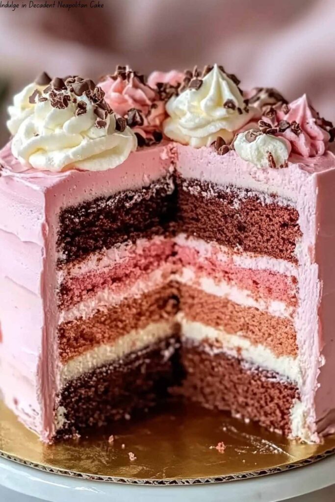 We hope you enjoy making and indulging in this Decadent Neapolitan Cake as much as we do. It’s a delicious and visually impressive dessert that is sure to become a favorite for any special occasion. Don’t forget to share your feedback and photos of your creation with us!