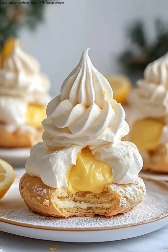 - Serve and Enjoy! These light choux pastries filled with lemon cream are ready to delight your taste buds!