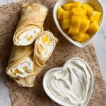 Keywords: Mango crepe roll, Mango dessert, Cream crepe, Whipped cream dessert, French crepes