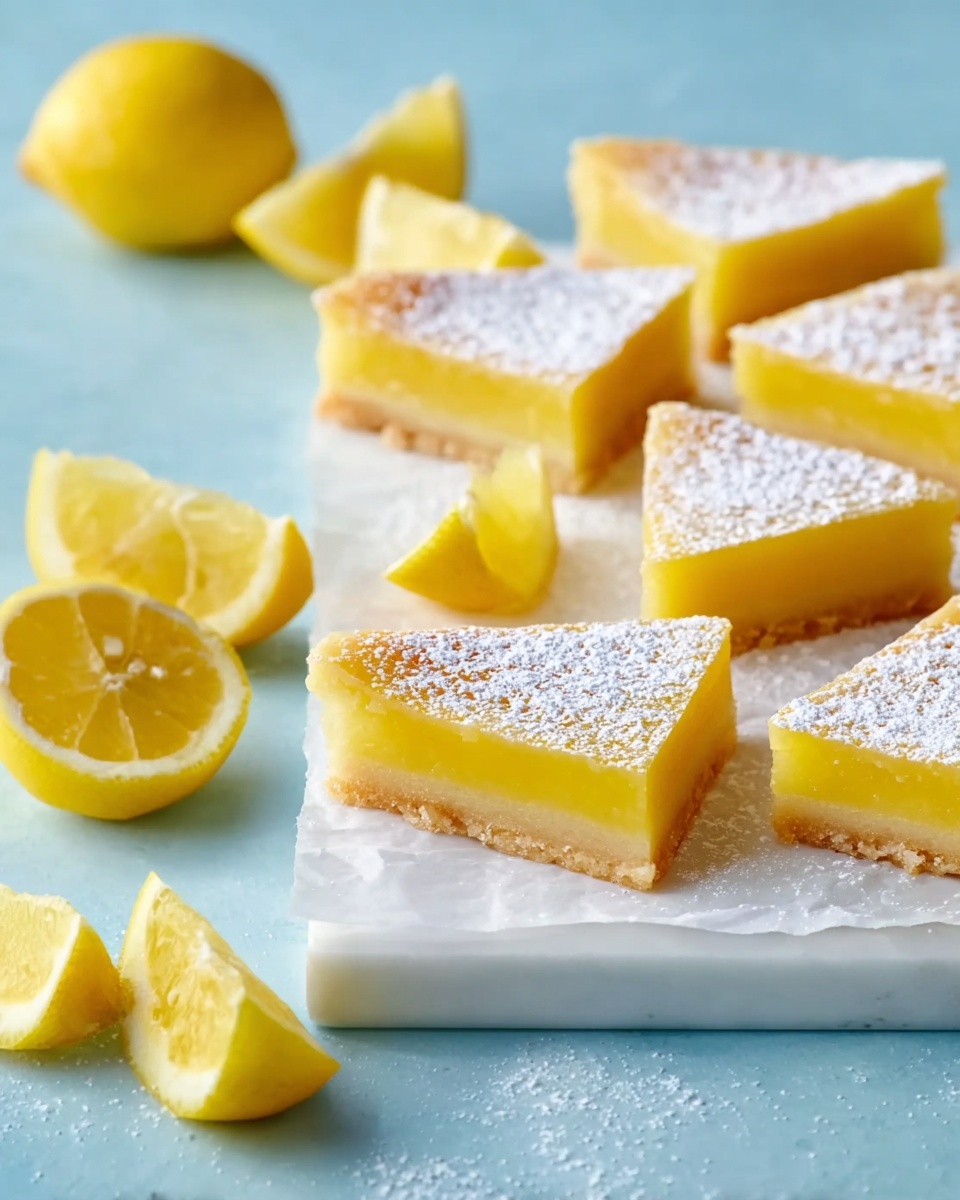 Let the bars cool in the pan on a wire rack completely, then refrigerate for at least 2 hours or overnight. Trust me, chilling is key for clean slices and that perfect firm-but-tender bite. Use the parchment paper to lift the bars out, then cut into 16 squares or 9 large squares cut diagonally for triangles—wiping your knife after each cut makes the edges super neat. Finish with a generous dusting of sifted powdered sugar.