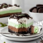 This Mint Chocolate Lasagna is a decadent no-bake dessert featuring a crunchy mint Oreo crust, a smooth and creamy mint-flavored cheesecake layer, and a rich chocolate pudding topping. Perfect for mint chocolate lovers and easy to prepare without the need for an oven.