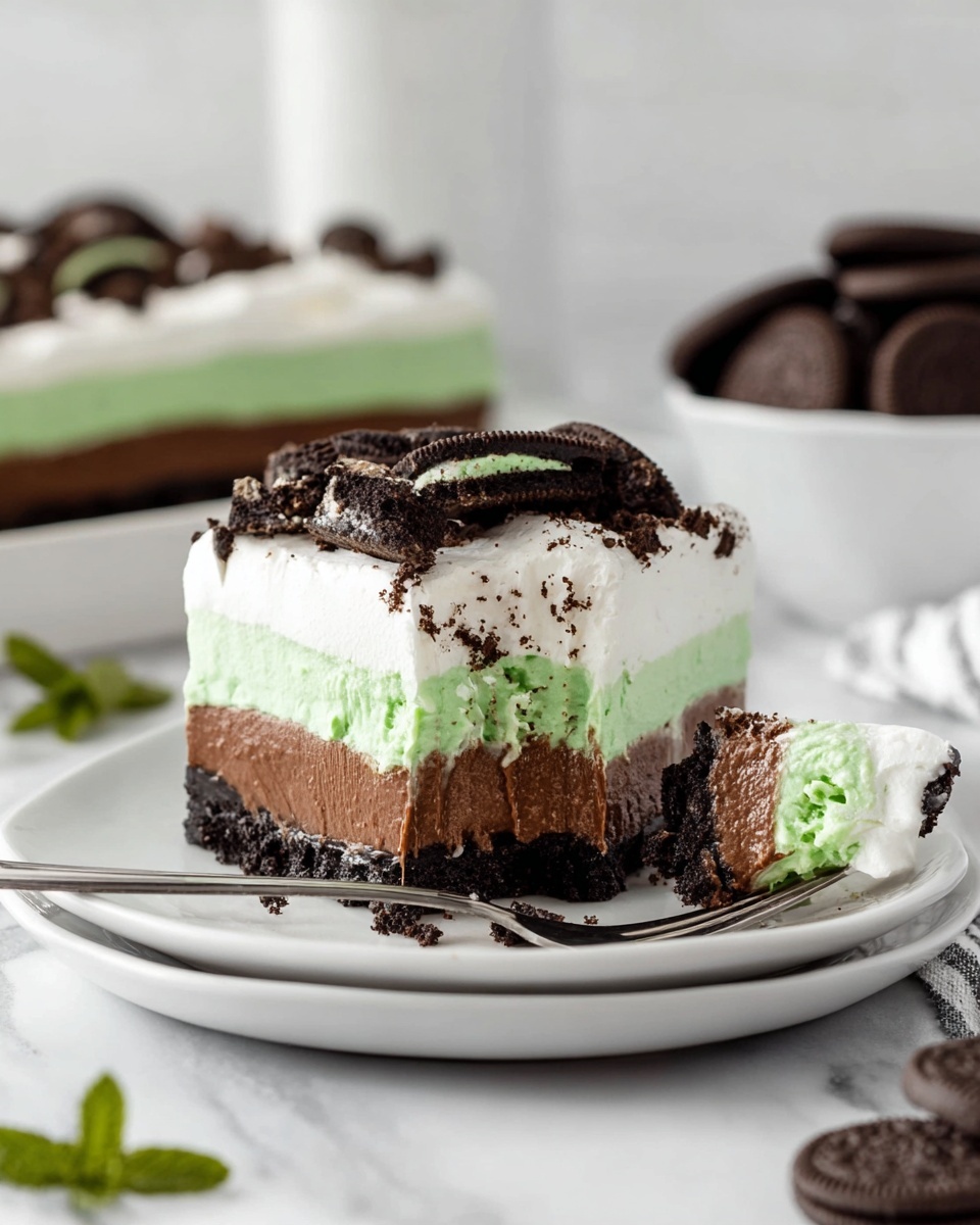 I like topping mine with a few crushed mint Oreos or a sprinkle of mini chocolate chips for a little crunch. Sometimes, I add a dollop of whipped cream and a fresh mint leaf to each slice—it makes every bite feel extra special and photo-worthy.