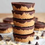 Pop the pan into the fridge for 2-3 hours so your peanut butter oat cups can set completely. Once firm, carefully remove them from the pan, liners, or silicone molds. They’re ready to enjoy or pack away for later snacking.