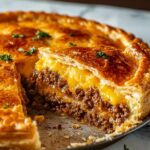 This One-Pan Cheeseburger Pie Dinner is a delightful, comforting dish combining the flavors of a classic cheeseburger into a convenient pie form. With a flaky biscuit crust filled with seasoned ground beef, melted cheddar cheese, eggs, and fresh tomatoes, it’s an easy and satisfying meal perfect for weeknights or casual gatherings.
