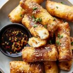 These Oven Fried Feta Rolls with Chili Honey are a crispy, savory appetizer featuring flaky phyllo dough filled with a flavorful mixture of feta, dill, and garlic. Baked to golden perfection and served with a sweet and spicy chili honey dipping sauce, they make for an irresistible snack or party treat.