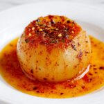 - Serve: Peel away the outer layer of the onion and serve the tender inner layers, seasoning each layer with extra salt if desired. Pour all the flavorful juices from the foil over the onion before serving. This dish pairs deliciously with rice, crispy chickpeas, or roasted vegetables like Brussels sprouts. Enjoy while hot.