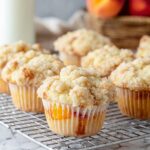 Keywords: peach cobbler muffins, peach muffins, streusel topping, breakfast muffins, fruit muffins, easy muffin recipe, homemade muffins