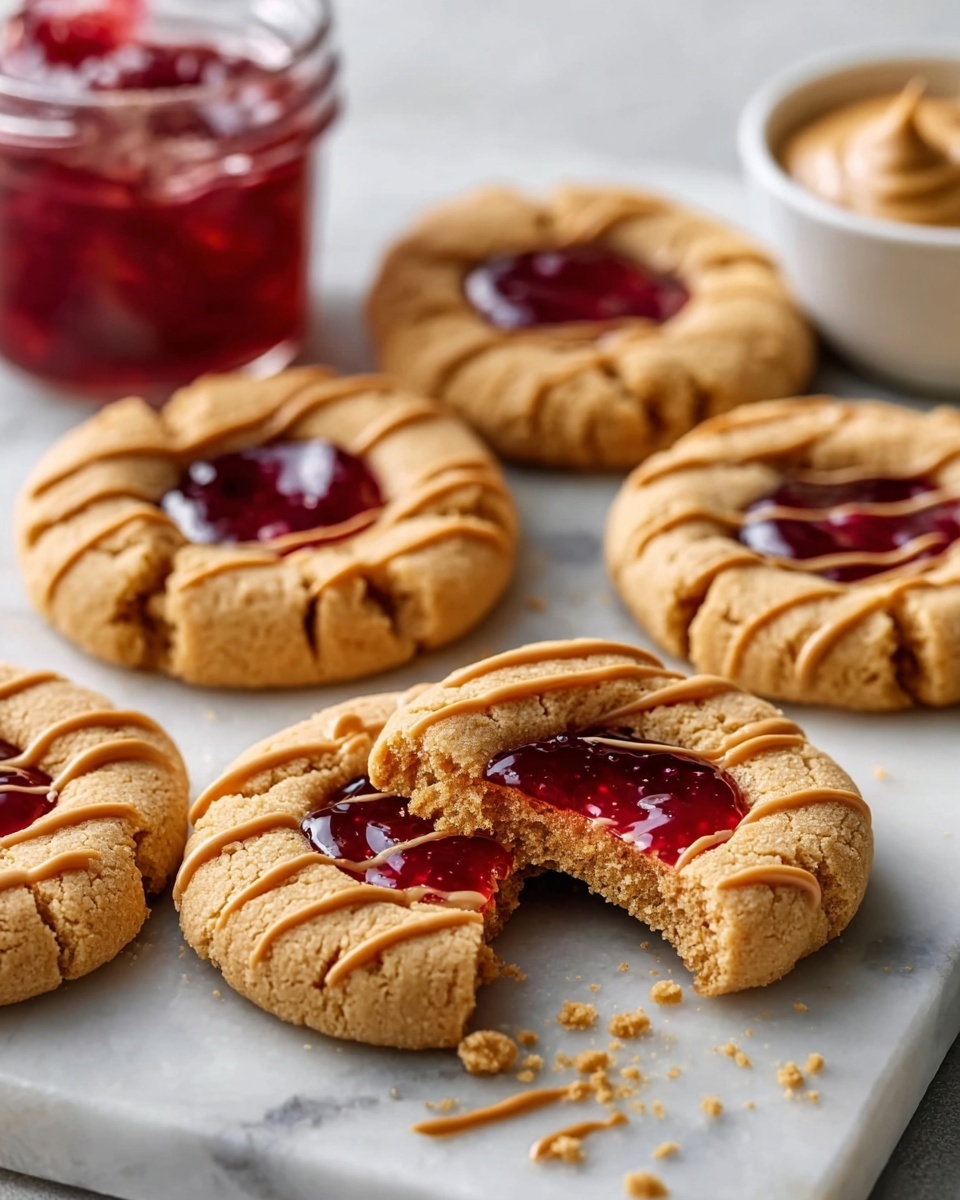 For birthdays or parties, I’ve shaped these cookies into mini sandwich stacks, decorating the tops with extra jam or peanut butter drizzle to look extra festive. Another idea that’s been a hit is presenting them in a lined gift box with a little handwritten note about the recipe — perfect for sharing with friends or neighbors!