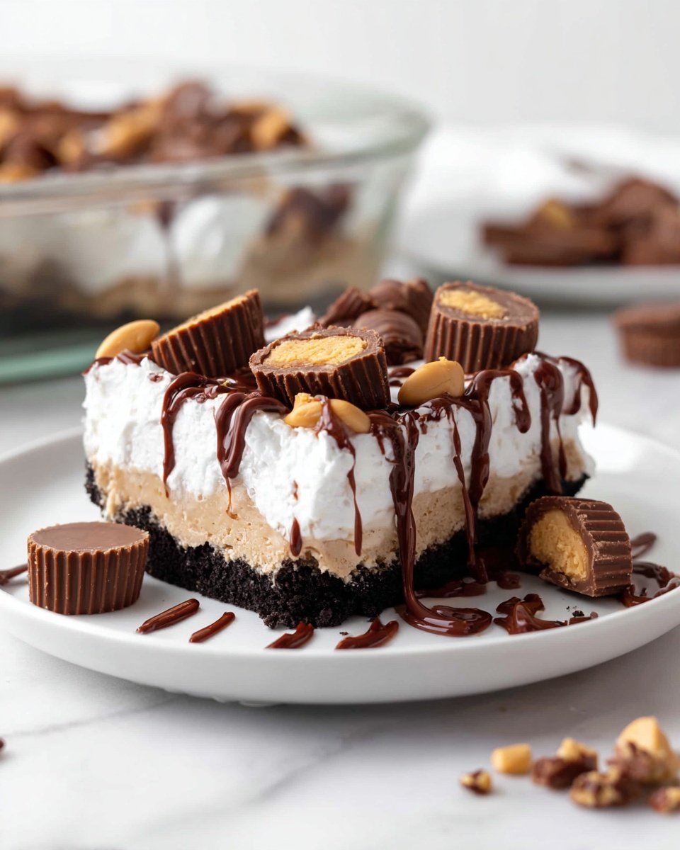 Keywords: Peanut Butter Lasagna, no-bake dessert, Oreo crust, chocolate pudding, creamy peanut butter dessert