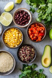 These ingredients create a fantastic blend of textures and flavors, making the quinoa fluffy and richly seasoned while the beans and corn add that classic Mexican charm. When shopping, I recommend grabbing fresh produce and a good-quality salsa to really up your game.