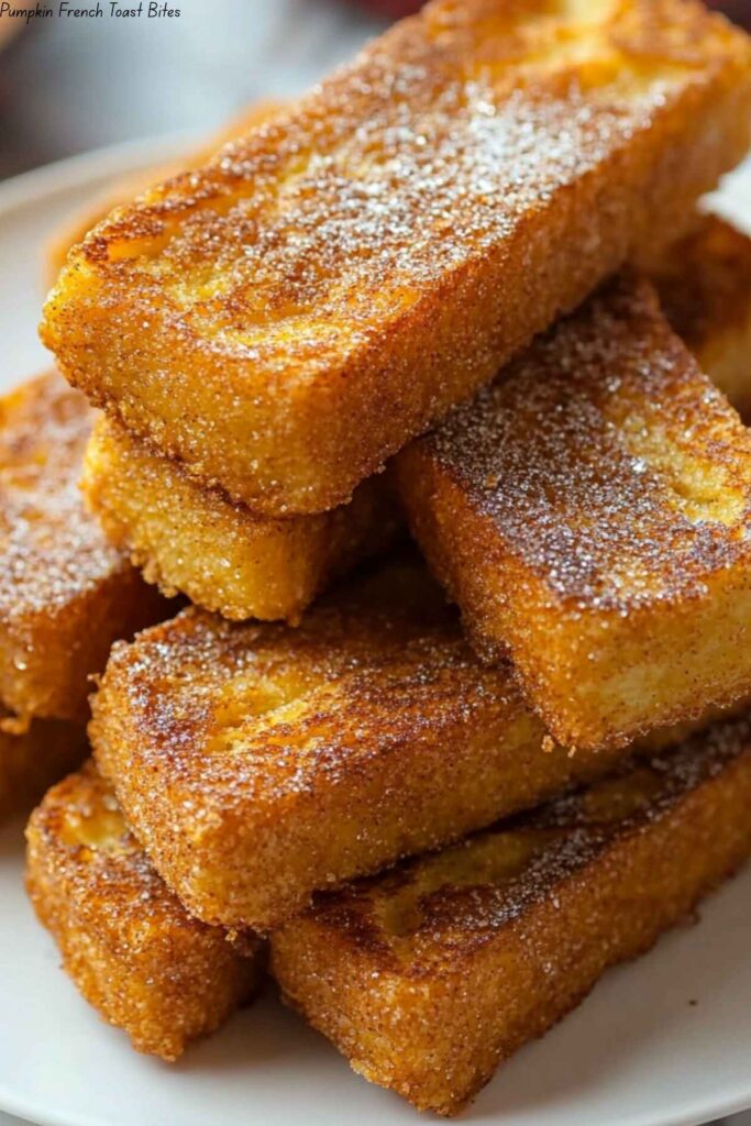 These Pumpkin French Toast Bites pair well with a hot cup of coffee or a tall glass of apple cider. For a complete breakfast, serve with a side of crispy bacon or scrambled eggs.