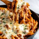 Now, add your drained pasta directly to the pan with the sauce and chicken. Give it a good stir so every bit is coated in that savory sauce. Sprinkle mozzarella or your Italian blend cheese evenly over the top, then turn off the heat. The residual warmth will melt the cheese gently into perfect gooeyness. If you’re feeling fancy and want that golden bubbly top, pop the whole pan under a broiler for 2-3 minutes—just keep an eye so it doesn’t burn!