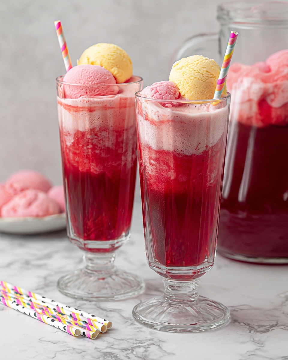 I usually top this punch with a handful of bright maraschino cherries and thin slices of lime or lemon for that extra zing and pop of color. A sprig of fresh mint never hurts, either—it adds a hint of freshness that pairs beautifully with the sherbet’s sweetness.