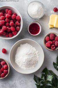 Every ingredient in this Raspberry Almond Puff Pastry Tart Recipe plays a key role in building layers of flavor and texture, so it’s worth picking good-quality versions. I always recommend keeping your butter cold and using fresh raspberries for that beautiful pop of color and natural sweetness.