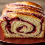 - Make the Raspberry Filling: Cook raspberry preserves with cornstarch and water until thickened. Roll out the dough, spread the filling, roll, and shape into a loaf.