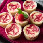 Keywords: mini cheesecake, raspberry swirl cheesecake, individual cheesecakes, graham cracker crust, creamy cheesecake dessert