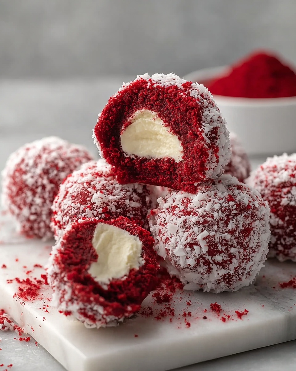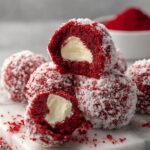 For holiday gatherings, I’ve arranged these Red Velvet Snowballs on tiered trays shaped like little snowy landscapes with powdered sugar “snow” dusted around them. Placing them in pretty cupcake liners also makes them easy to pick up and adds a festive pop of color on your dessert table.