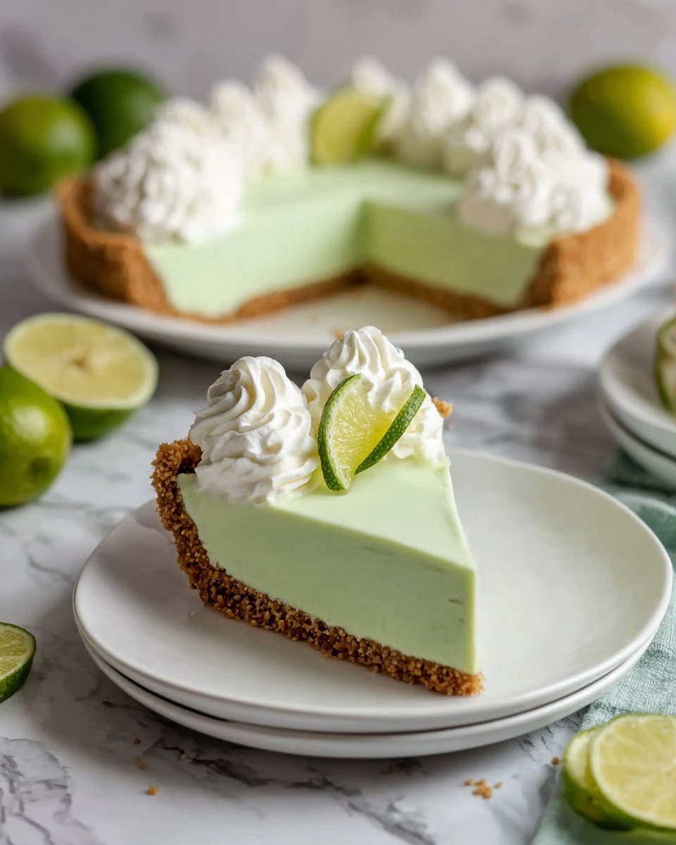 - Serve: Once set, remove the pie from the refrigerator. Slice, garnish as desired (for example, with lime slices or zest), and serve chilled for a refreshing dessert.
