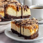 This Samoa Cheesecake with Coconut Topping is a decadent dessert inspired by the popular Samoa cookies. It features a rich chocolate cookie crust, a smooth and creamy cheesecake layer, and a luscious topping of toasted coconut combined with salted caramel sauce. Finished with drizzles of chocolate and caramel sauces and optional Samoa cookies, this cheesecake is perfect for any special occasion or a sweet indulgence.