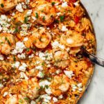 Leftovers keep well in an airtight container in the fridge for up to three days. I always recommend storing the shrimp orzo separately from any fresh garnishes to keep everything fresh and vibrant when reheating. Before you store, let the dish cool down a bit so the feta doesn’t dry out or become grainy.