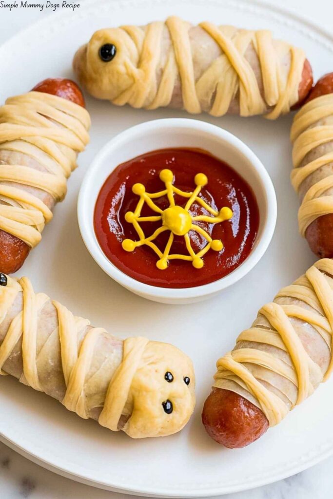 These simple mummy dogs are a fun and spooky twist on classic hot dogs. Perfect for Halloween parties or a kid-friendly meal!