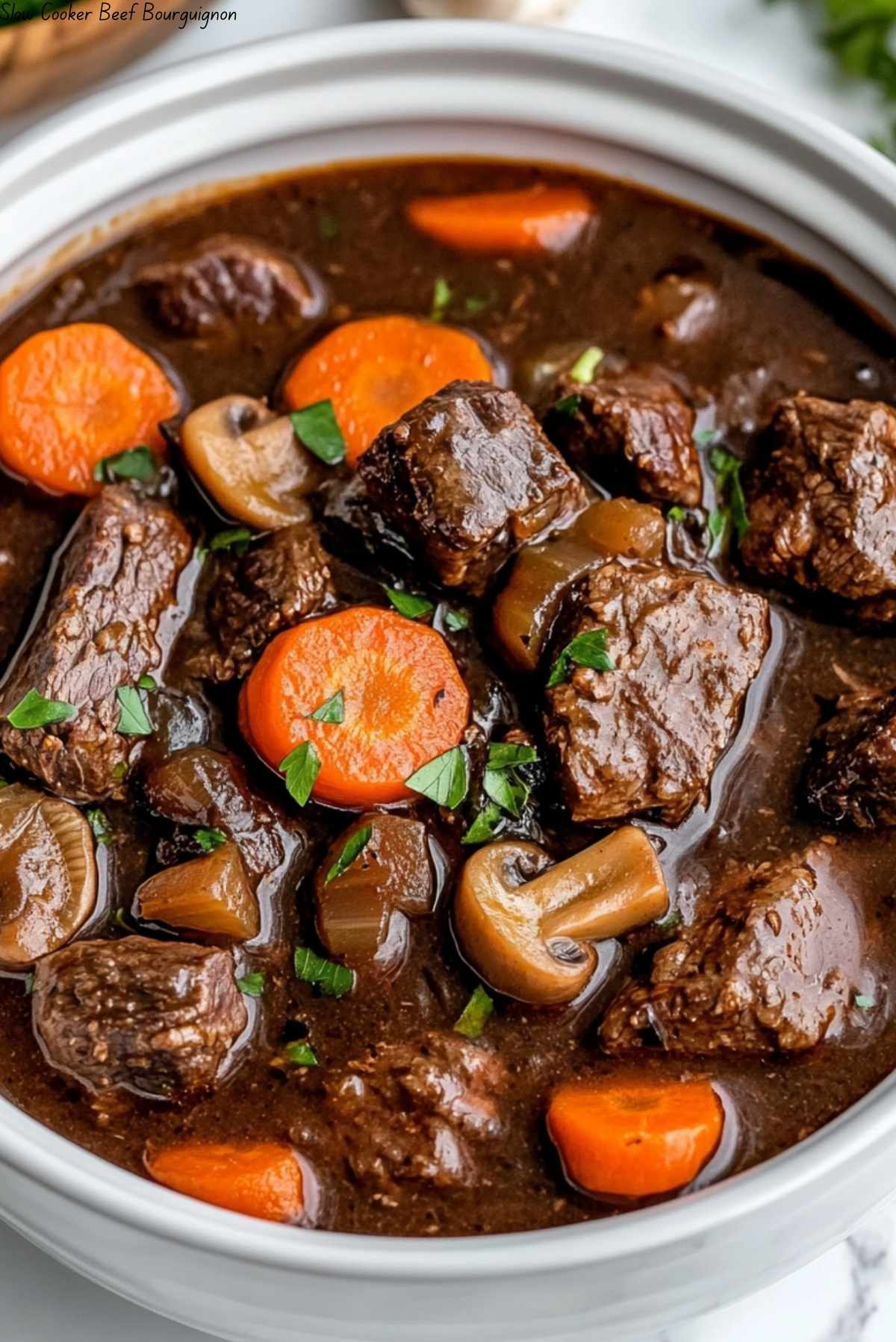 Keywords: Slow Cooker Recipe, Beef Bourguignon, Comfort Food, French Cuisine