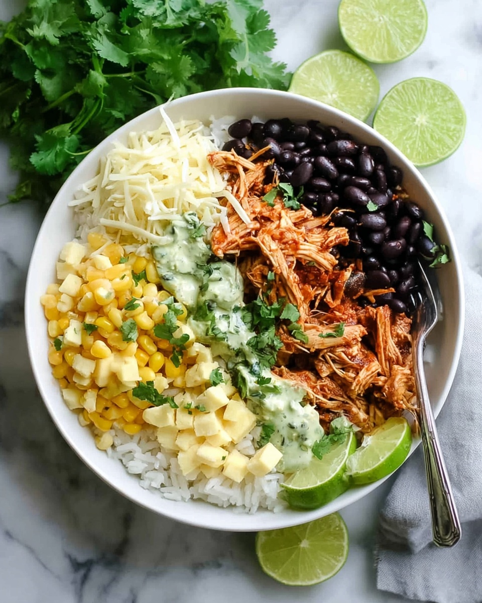 For parties or meal prep, I sometimes assemble these burrito bowls in mason jars layered beautifully so you can see all the colors. It’s visually stunning and keeps the ingredients fresh until you’re ready to eat. Another fun idea is to serve the chicken mixture alongside tortilla chips and a variety of bowls filled with toppings so everyone can build their own burrito bowl experience.
