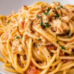 - Serve and garnish: Spoon the creamy chicken spaghetti onto plates or bowls and garnish with freshly chopped parsley for a bright, fresh finish.