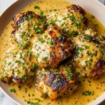 This Slow Cooker Honey Mustard Chicken is a comforting and flavorful dish featuring tender, juicy chicken thighs simmered in a luscious honey mustard cream sauce. The chicken is first seared to lock in juices and add a crispy texture before being slow-cooked to perfection in a rich sauce made with Dijon mustard, honey, cream, and fresh rosemary. It’s an easy, hands-off recipe ideal for busy days, delivering a perfect blend of tangy, sweet, and savory flavors.