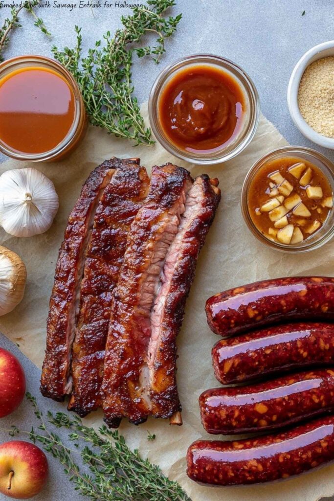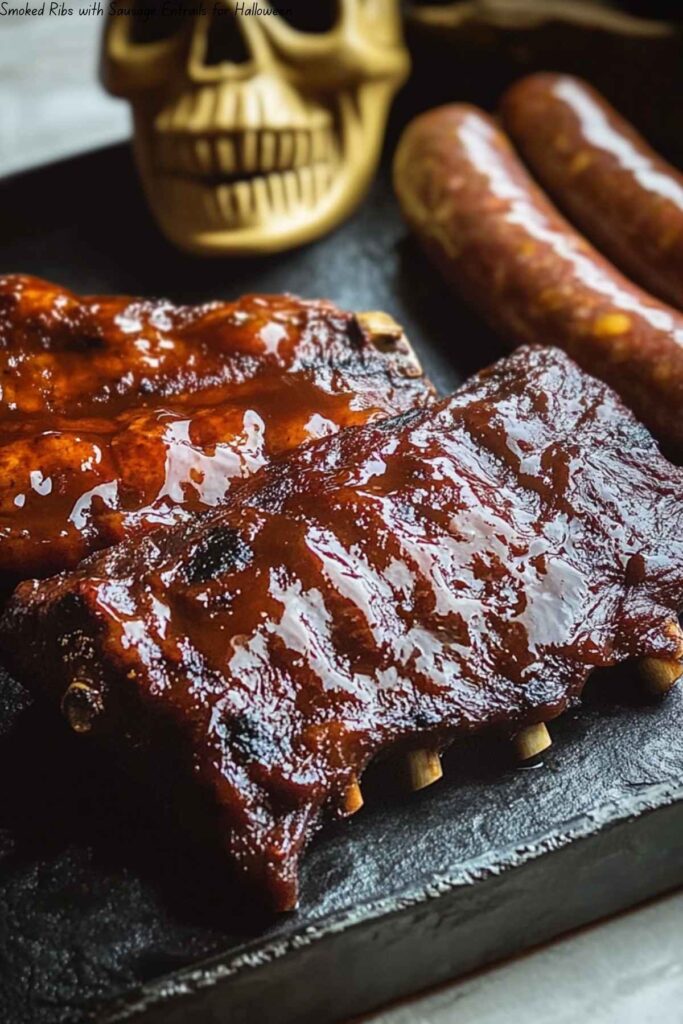 Keywords: Halloween recipe, smoked ribs, BBQ sausage, spooky dish