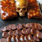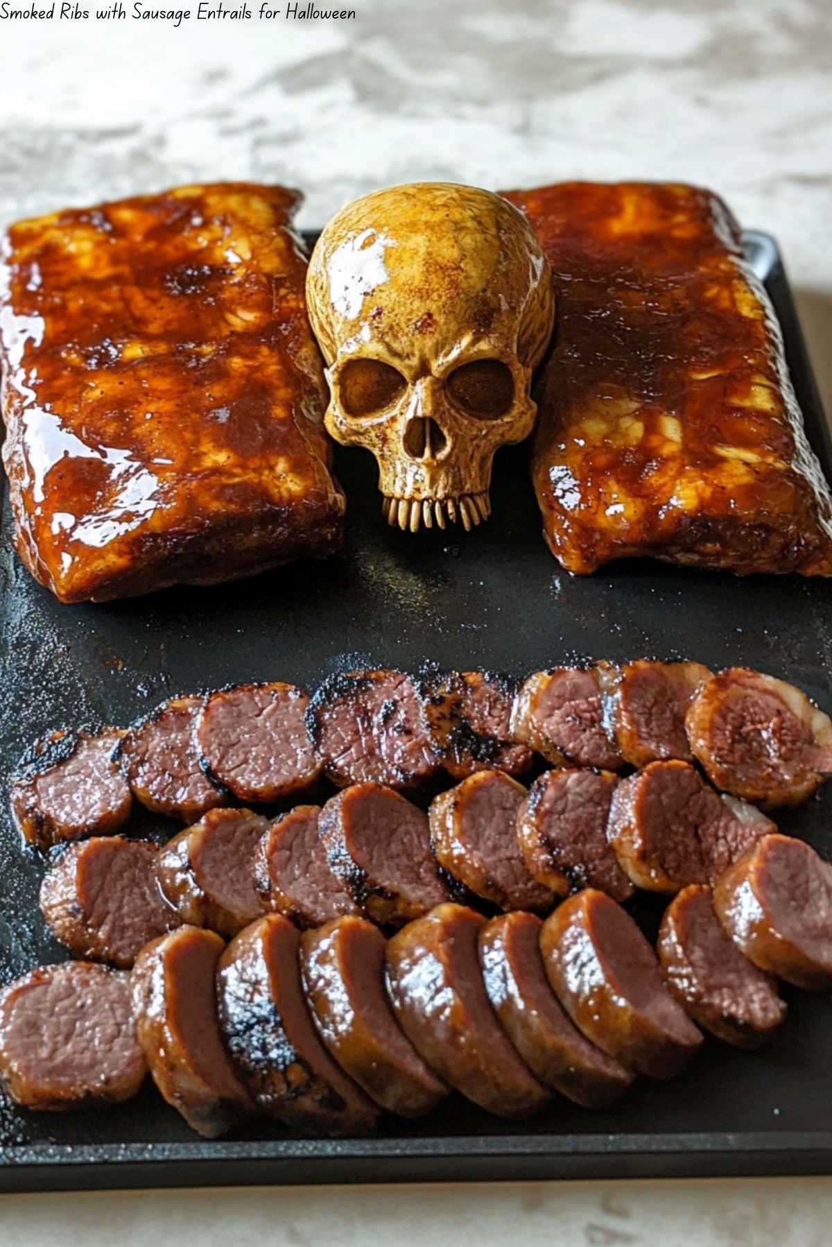 Keywords: Halloween recipe, smoked ribs, BBQ sausage, spooky dish