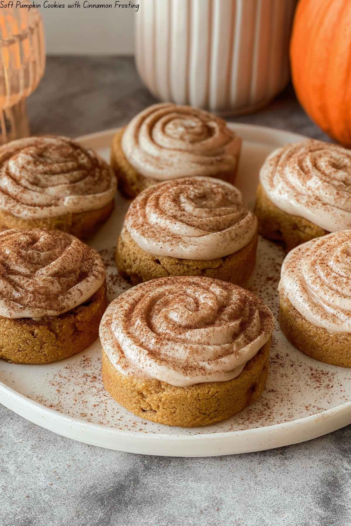 Keywords: Pumpkin Cookies, Cinnamon Frosting, Fall Dessert, Vegan Baking