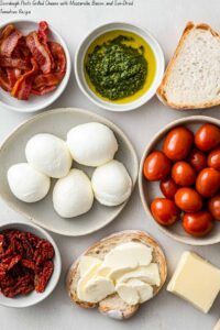 Start by cooking your bacon until it’s perfectly crispy—don’t rush this part because that smoky crunch is what brings the sandwich to life. While it cools, slice your mozzarella thinly. Chop your sun-dried tomatoes finely, so the flavor mixes in every bite. Have your pesto ready and your butter softened but still cool enough to spread easily on the bread.