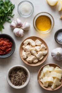 - Garlic cloves and diced onion: Classic aromatics that boost the sauce’s flavor base.