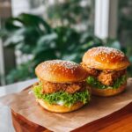 Toast the burger buns lightly, then spread a generous layer of the spicy creamy sauce on both the top and bottom. Add fresh lettuce, the crispy chicken thigh, and a slice of American cheese so it melts just a bit on the warm chicken. Slap the top bun on, press down gently, and you’re ready to dive in! The layers of crunch, spice, and creaminess make it one seriously satisfying bite.