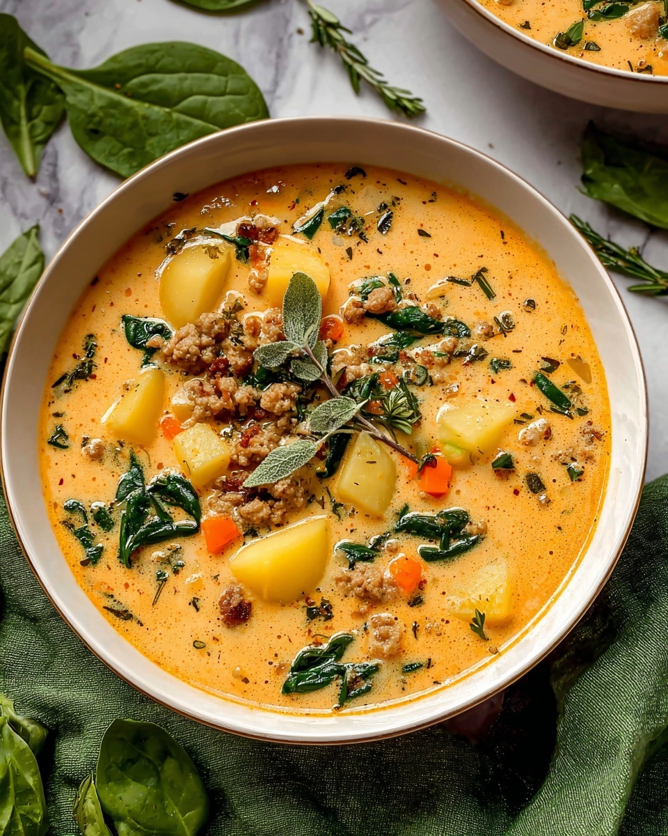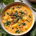This hearty Sausage Potato Soup combines spicy Italian sausage with tender potatoes, fresh vegetables, and a hint of cream for a comforting and flavorful meal. Perfect for cool evenings, this soup is infused with aromatic herbs and a touch of heat from paprika and red pepper flakes, creating a well-balanced and satisfying dish.