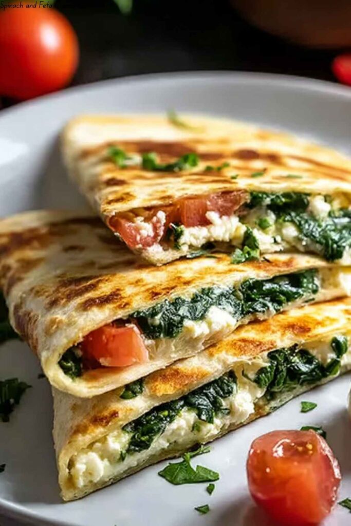 These Spinach and Feta Quesadillas are a delicious and easy-to-make meal option that combines the flavors of fresh spinach, tangy feta cheese, and optional add-ins like sun-dried tomatoes and grilled chicken, all wrapped in a warm tortilla.