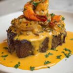 This luxurious Steak, Shrimp & Lobster Sauce recipe combines perfectly seared filet mignon with succulent shrimp and lobster tails in a rich, creamy seafood sauce. The sauce is crafted with butter, white wine, clam juice, heavy cream, and a blend of smoky spices, making it an indulgent surf-and-turf dish ideal for special occasions or an elegant dinner at home.