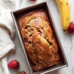 Keywords: Strawberry Banana Bread, banana bread recipe, quick bread, baked fruit bread, moist banana bread, strawberry dessert bread